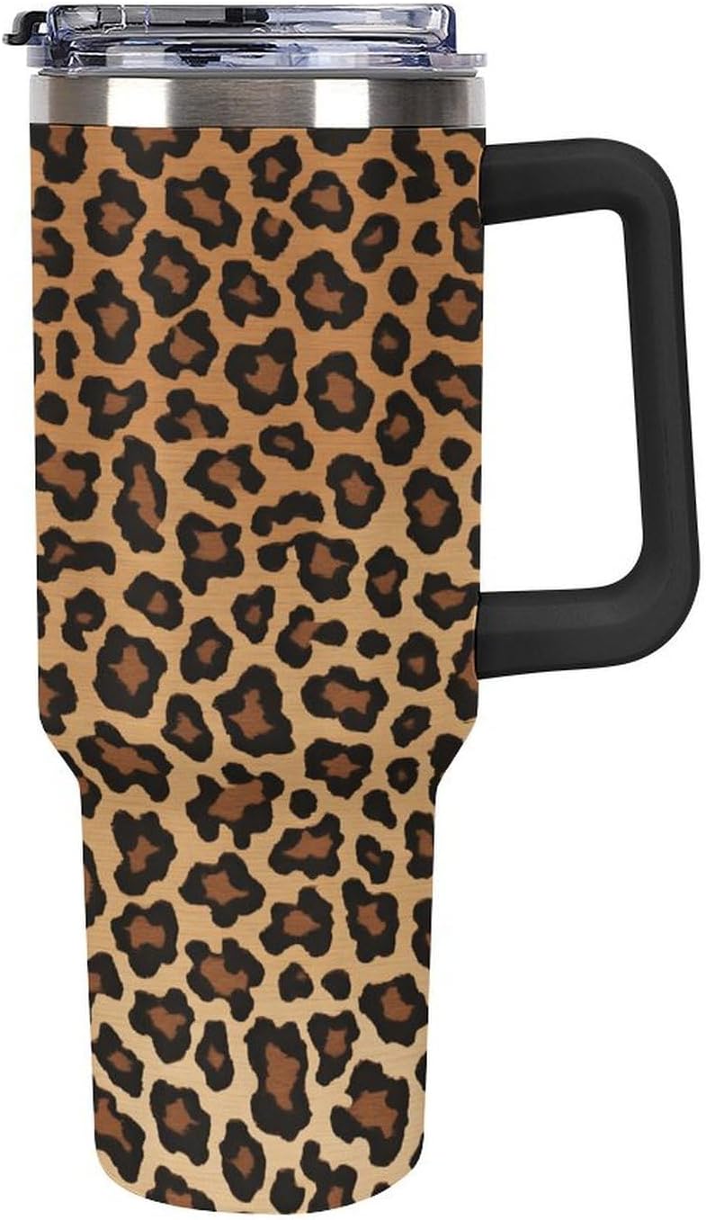 40oz Insulated Stainless Steel Tumbler with Handle, Leopard Animal Print Skin Leakproof Water Bottles Travel Mug with Lid And Straw for Water, Iced Tea Or Coffee for Most Car Cup Holder