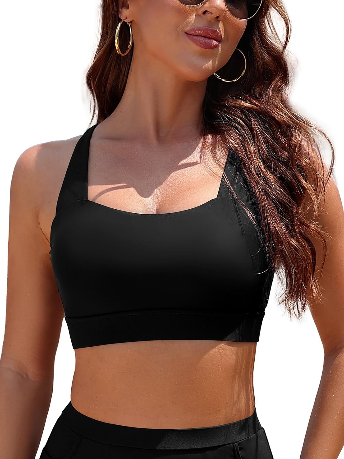 SHEKINI Women's Square Neck Bikini Tops Adjustable Wide Strap Bathing Suit Top Only