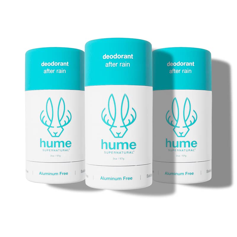 Hume Supernatural Aluminum Free Deodorant for Women & Men - Safe for Sensitive Skin - Probiotic, Plant-Based, Baking Soda Free, Aloe, & Cactus Flower, Anti Sweat, Stain & Odor - After Rain, 3-Pack