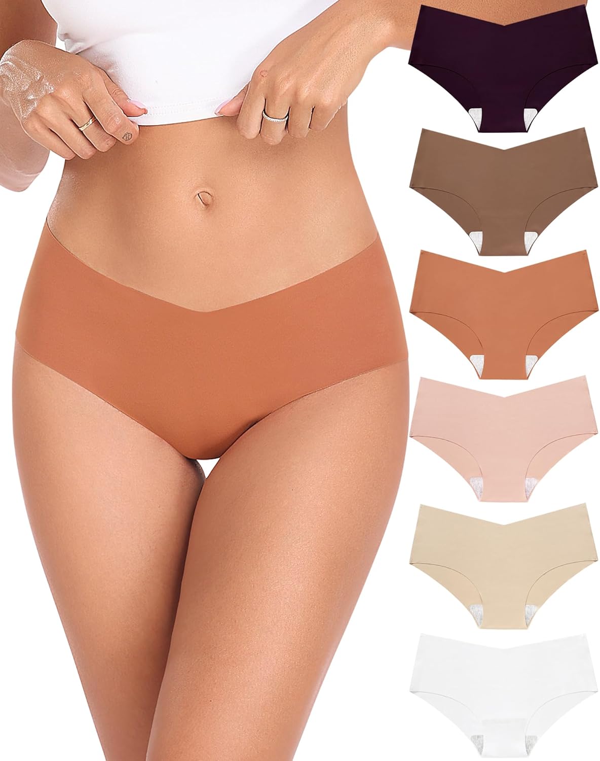 Xibing Seamless Underwear for Women No Show Panties Cheeky Bikini Underpants Soft Stretch Invisible Hipster 6-Pack Size XS-XL