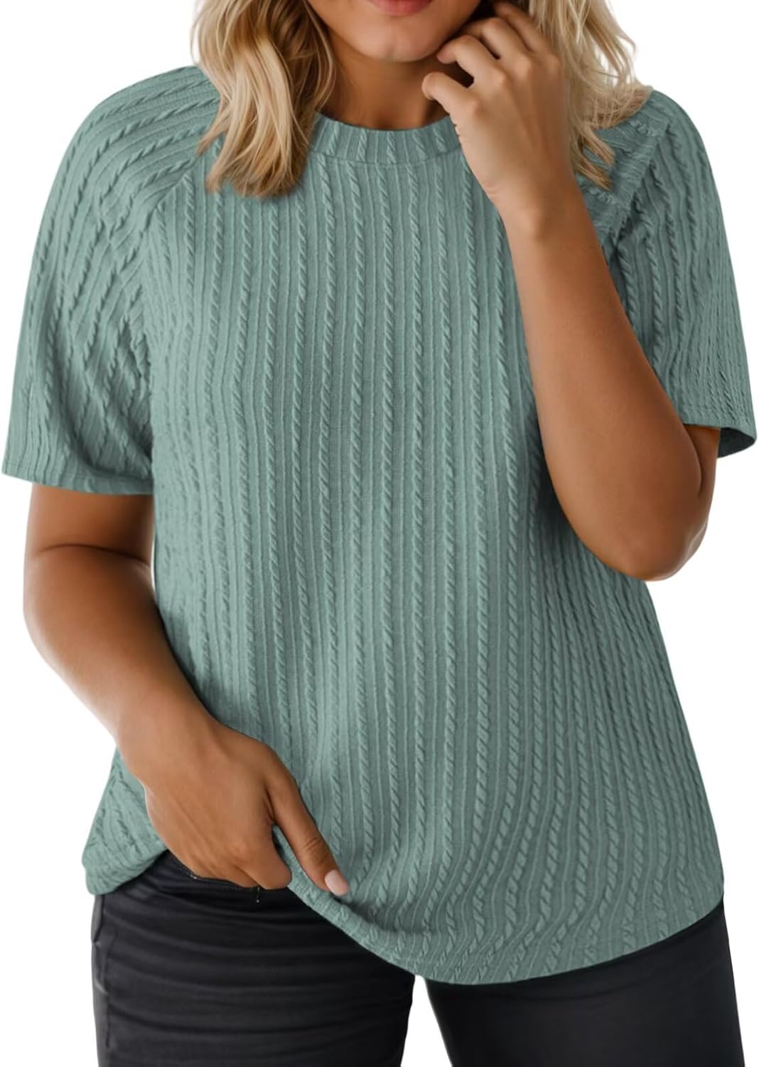VISLILY Womens-Plus-Size-Summer-Tops Casual Crew Neck Lightweight Shirts Trendy Knit Tunic Basic Short Sleeve Blouses XL-5XL