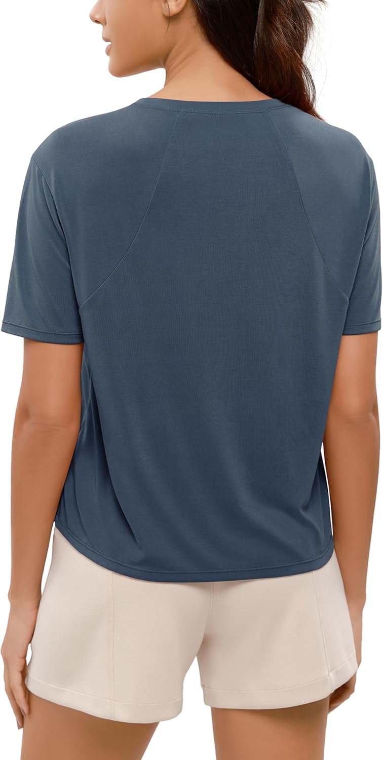 ODODOS Modal Soft Short Sleeve Shirts for Women Crew Neck Yoga Tee Casual Workout Tops