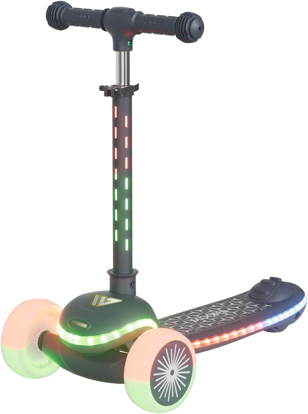 - 【LED Light-Up Wheels for Fun & Visibility】 The built-in LED light up wheels flash colorful lights as kids ride—Press the switch before riding to make the colored lights flash. This light up kids scooter is more exciting to ride and easier to spot, encouraging outdoor play and active fun day or night.