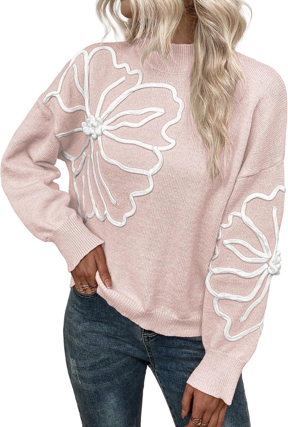 SISKIN Oversized Floral Fall Sweaters for Women Dressy Mock Neck Cozy Cute Floral Sweater in Winter