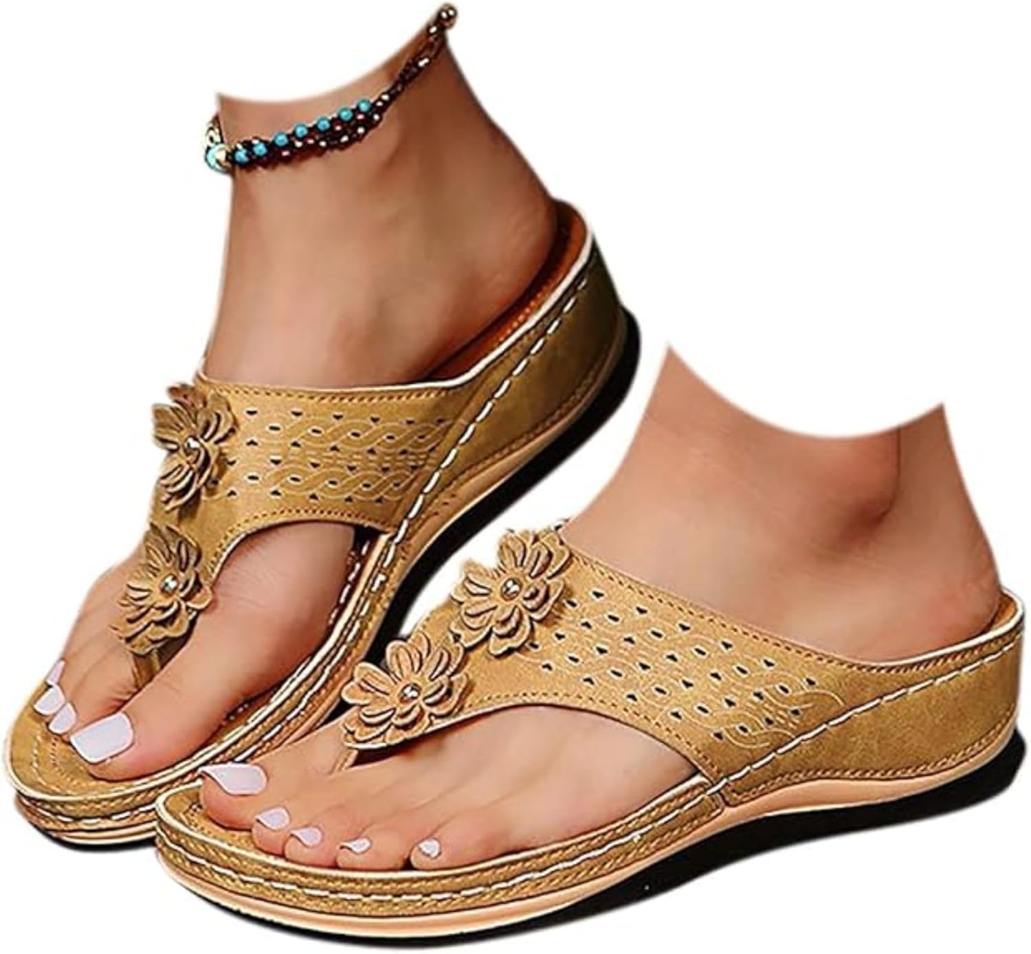 Women's Arch Support Sandals Orthopedic Flip Flops with Cushion Footbed Platform Wedge Walking Sandals for Women Dressy Summer Slip on Thong Sandals