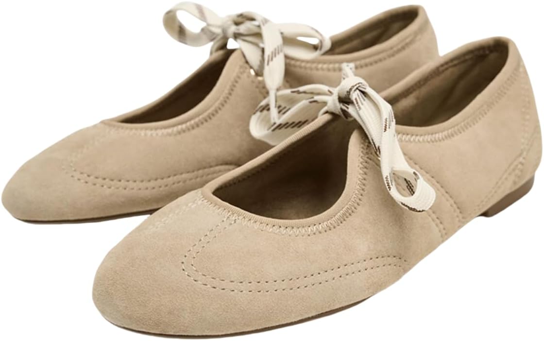 Lace Up Ballet Flats for Women Suede Mary Jane Ballet Flats
