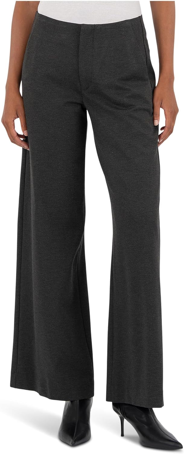 KUT from the Kloth Womens Meg - Wide Leg Pants with Trouser Pockets in Charcoal