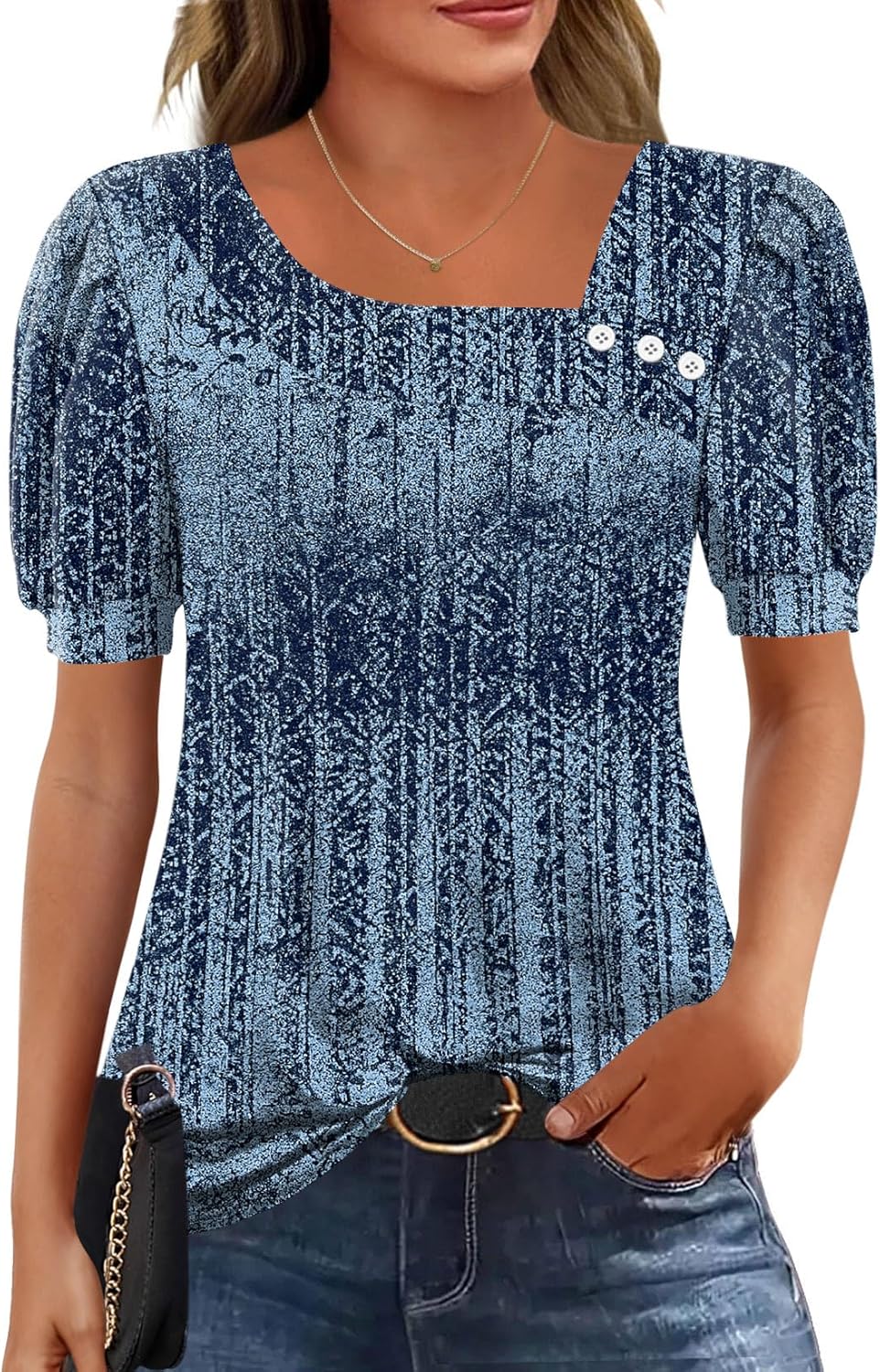 Lomon Womens Short Sleeve T Shirts Asymmetrical Neck Tops Business Blouses for Women Fashion 2026