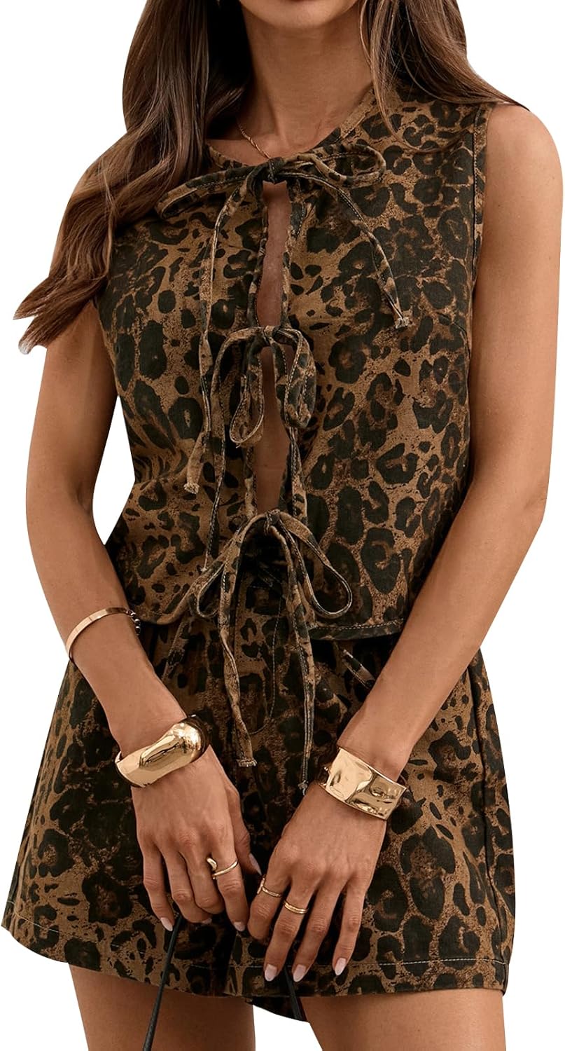 MINTLIMIT Women's Denim Vest Top Tie Front Sleeveless Crop Jean Vest Y2K Summer Casual Waistcoat Tank Tops