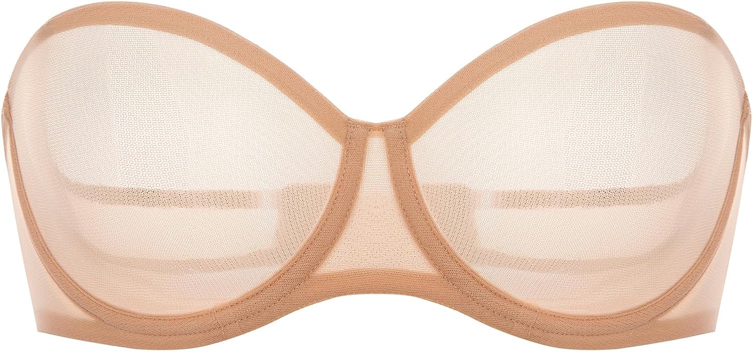 INLYRIC Women's Sheer Strapless Bras Mesh Sexy Unlined Plus Size See Through Bra Underwire Demi Mesh Non Padded