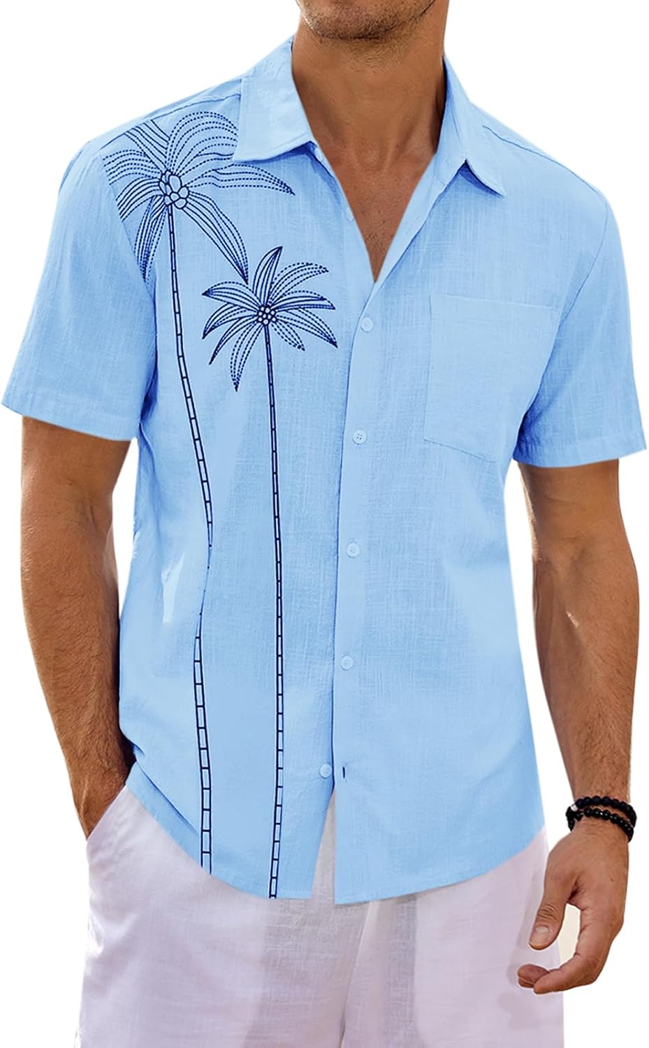 Runcati Mens Hawaiian Shirt Short Sleeve Button Down Summer Beach Vacation Cotton Linen Shirts
