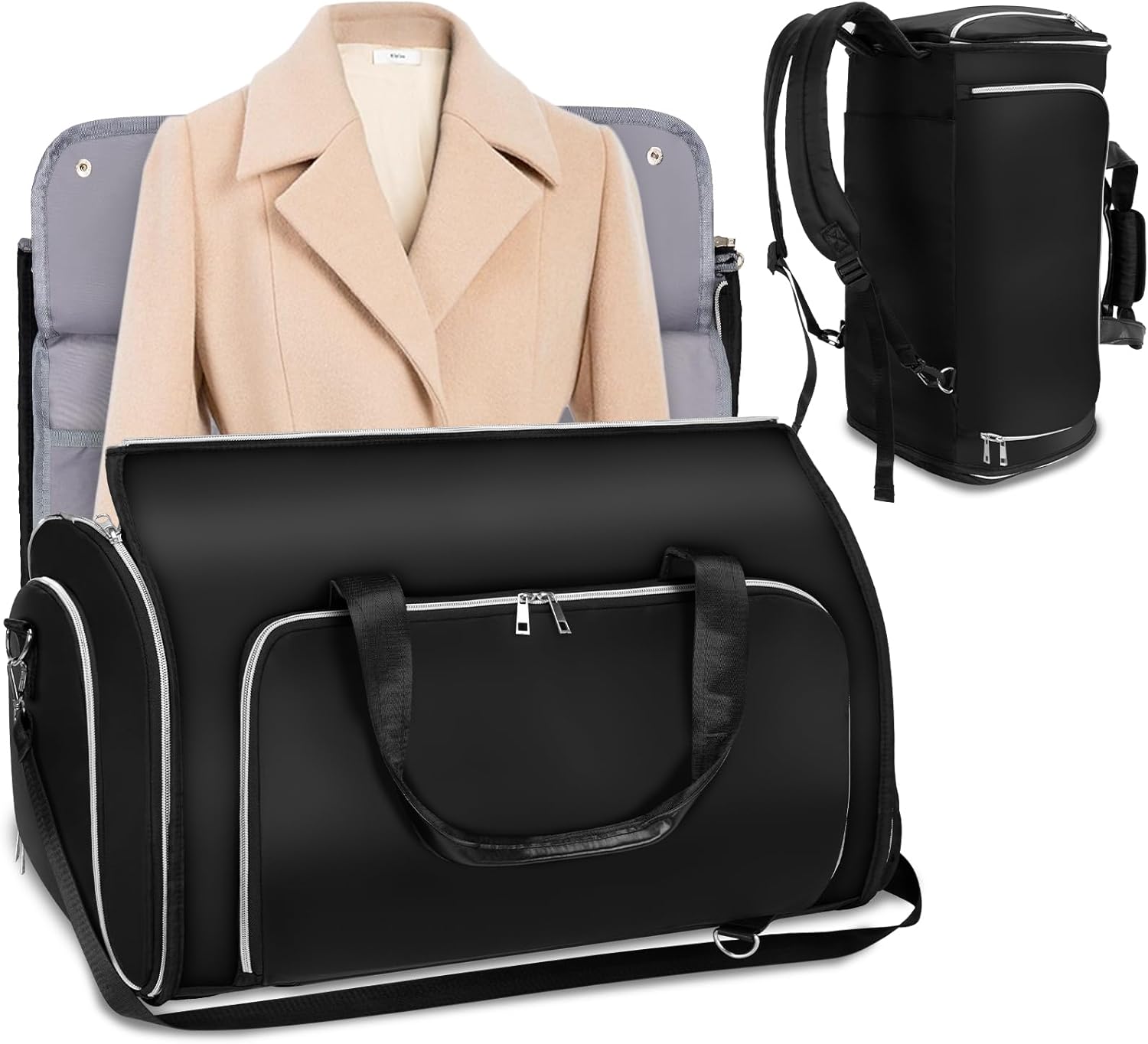 - 4-IN-1 CONVERTIBLE GARMENT DUFFEL BAG: The foldable duffle bag for travel can transforms between travel backpack, hand bag, roller and shoulder bag. Perfect for business travel bag, gym bag, and weekender bags for women