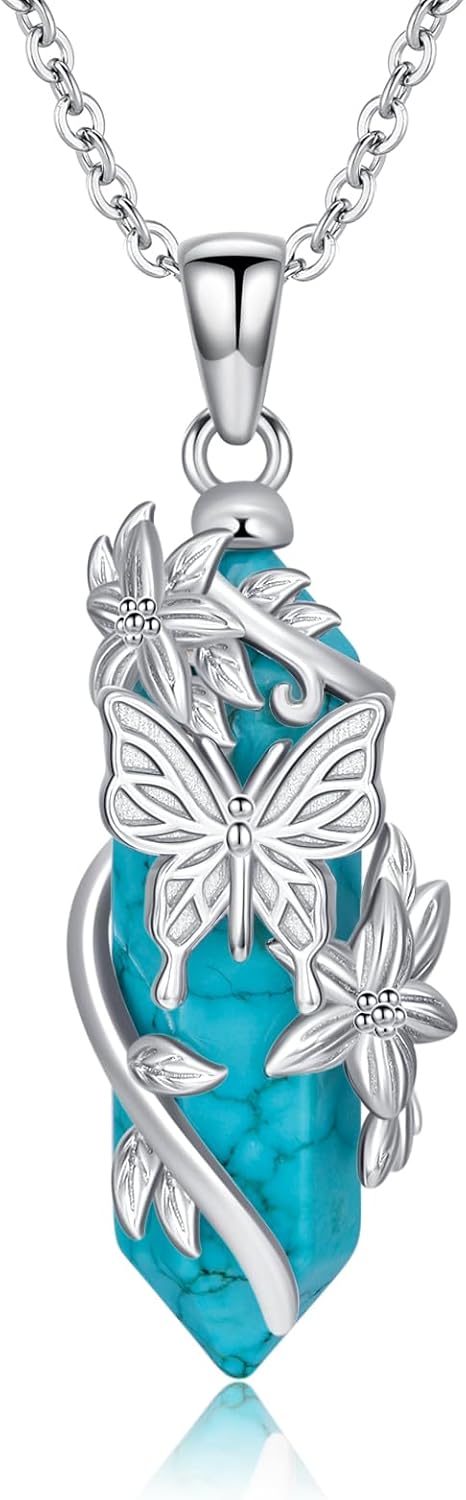 Natural Turquoise Butterfly Necklace for Women 925 Sterling Silver Butterfly Pendant with Genuine Turquoise Jewelry Gifts for Mom Wife Girlfriend