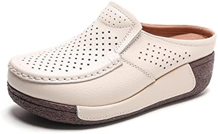 UGOSELEC Women Leather Breathable Slip On Mules,Casual Hollow Out Non-Slip Arch Support Slip On Clogs and Mules Work Shoes Sandals