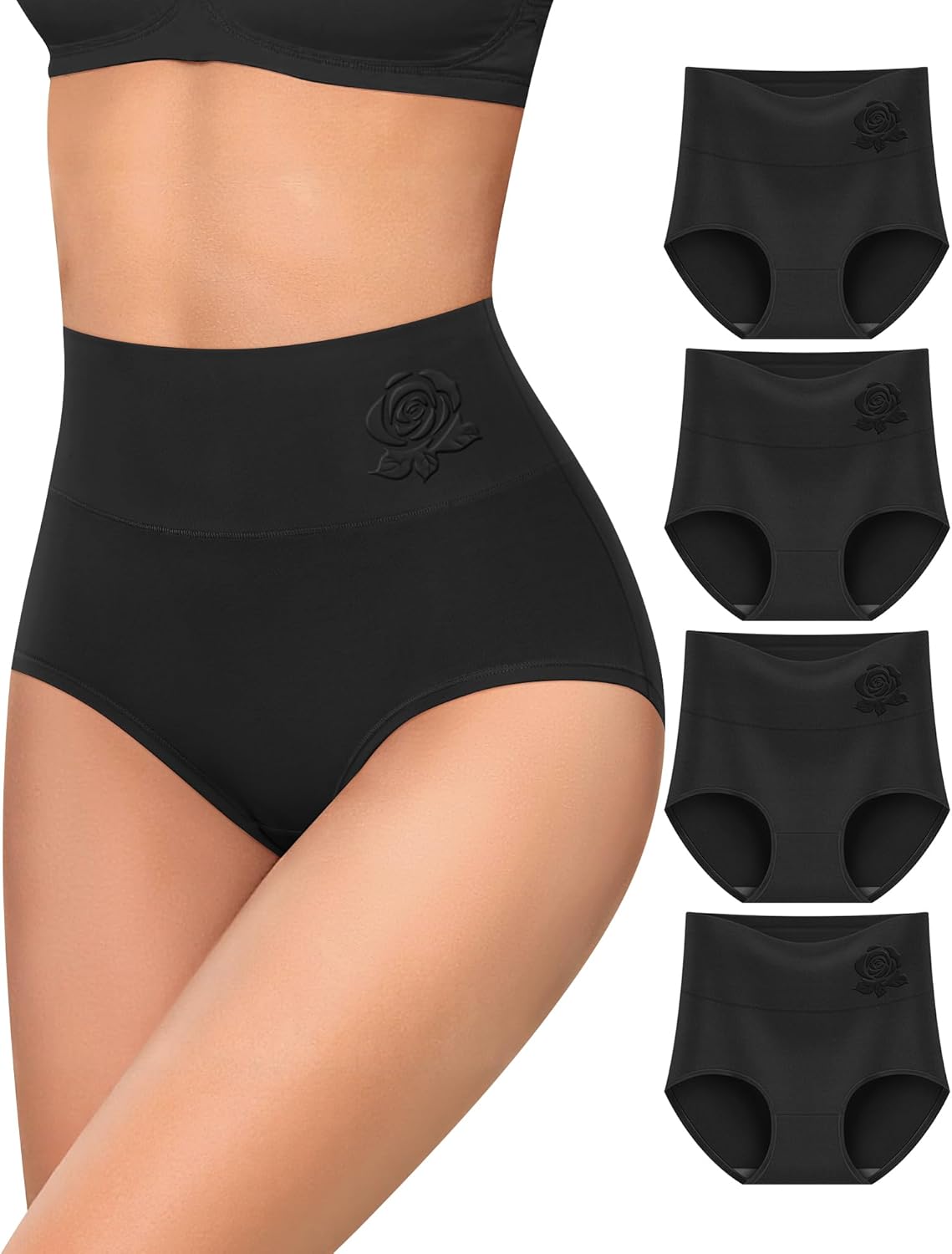 MEIYATING Women's Cotton Underwear High Waisted Tummy Control Panties Postpartum Stretch Full Coverage Ladies 4 Packs