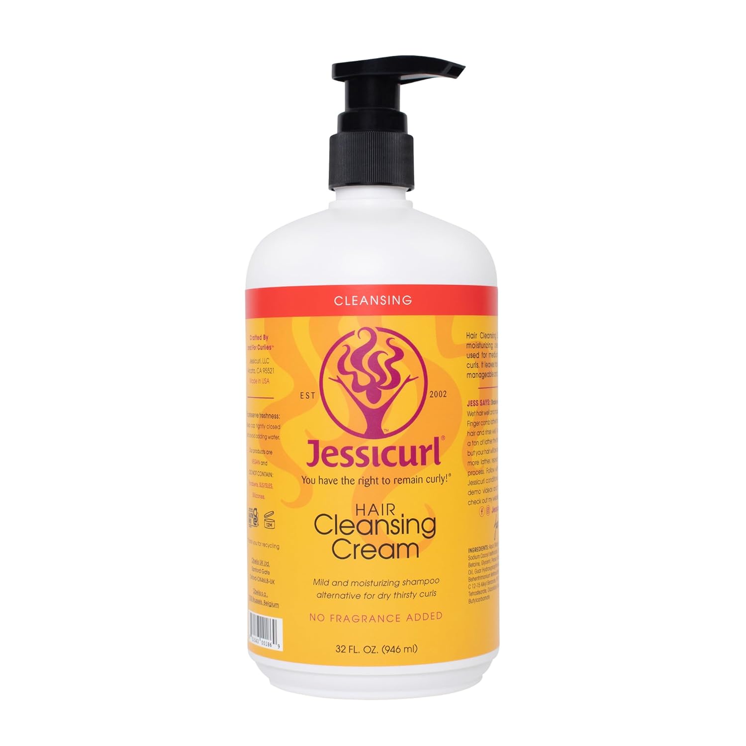 Jessicurl, Hair Cleansing Cream, No Fragrance Added, 32 Fl oz. Moisturizing Shampoo for Curly Hair, Sulfate Free Shampoo for Dry Hair