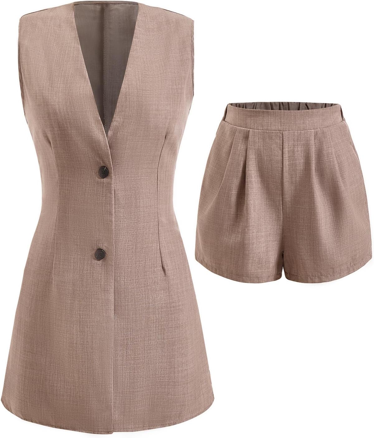 Women's 2 Piece Business Casual Outfits Summer Button Up V Neck Blazer Vest and Shorts Set