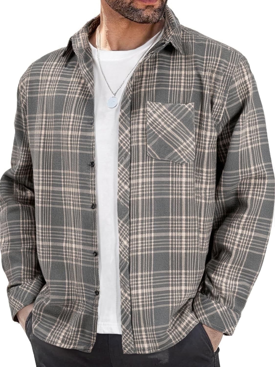 BAYAMO Men's Flannel Button Down Shirt Casual Plaid Long Sleeve Fall Jacket Lightweight Soft Tops with Pockets