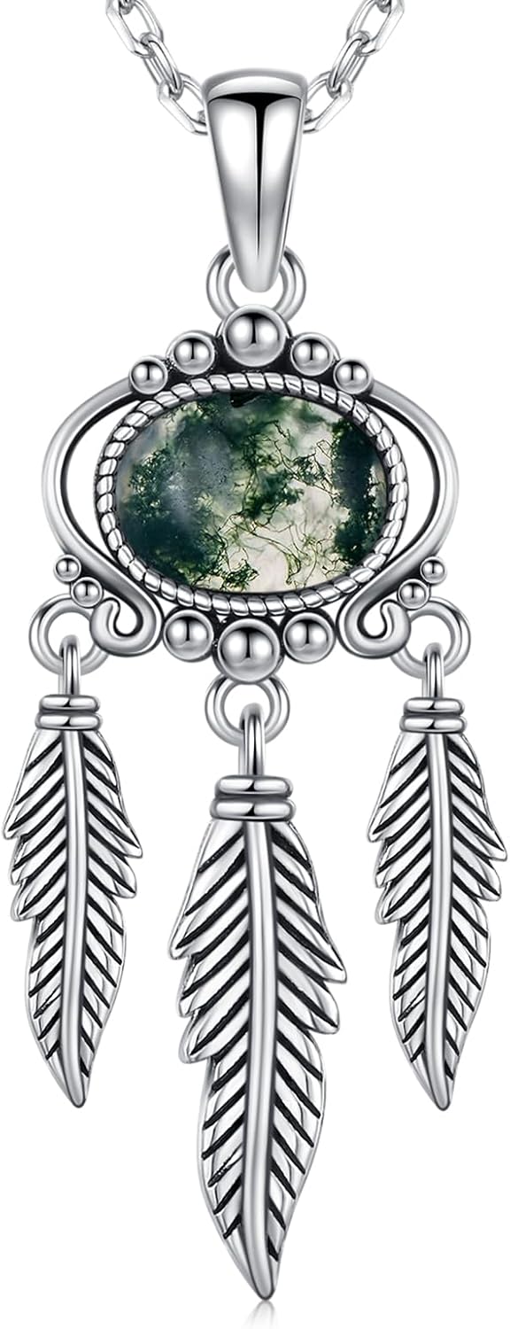 Midir&Etain Boho Feather Necklace 925 Sterling Silver Vintage Native American Protection Jewelry Gifts for Women