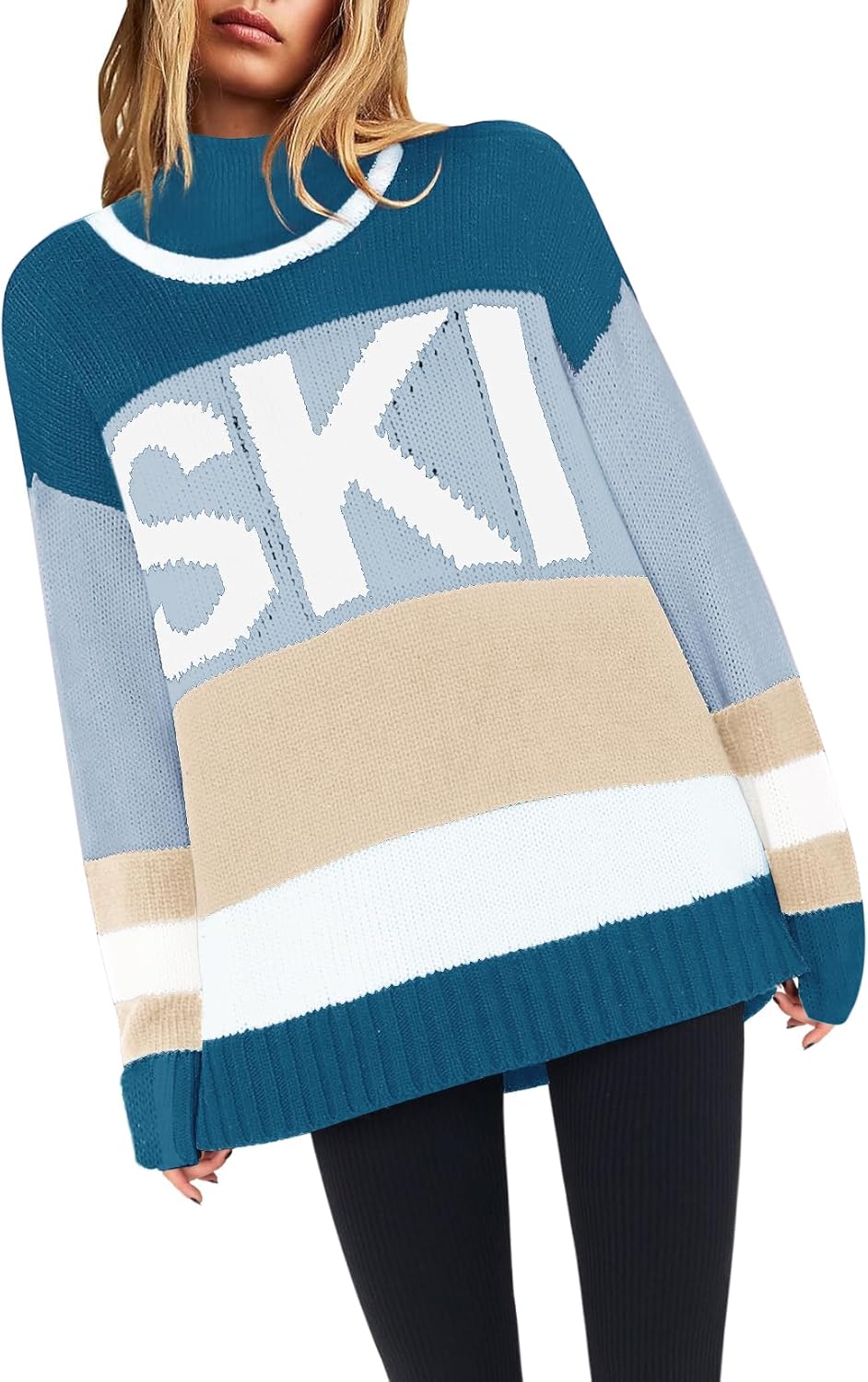 Yousify Womens Sweaters Fall 2025 Oversized Color Block Ski Sweater Crewneck Winter Tops S-2XL