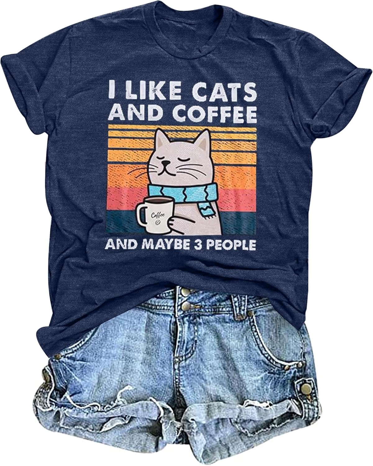 Cat Shirt I Like Cats and Coffee and Maybe 3 People Graphic T-Shirt Vintage Cat Lover Shirts Retro Coffee Lover Gift Tee Tops
