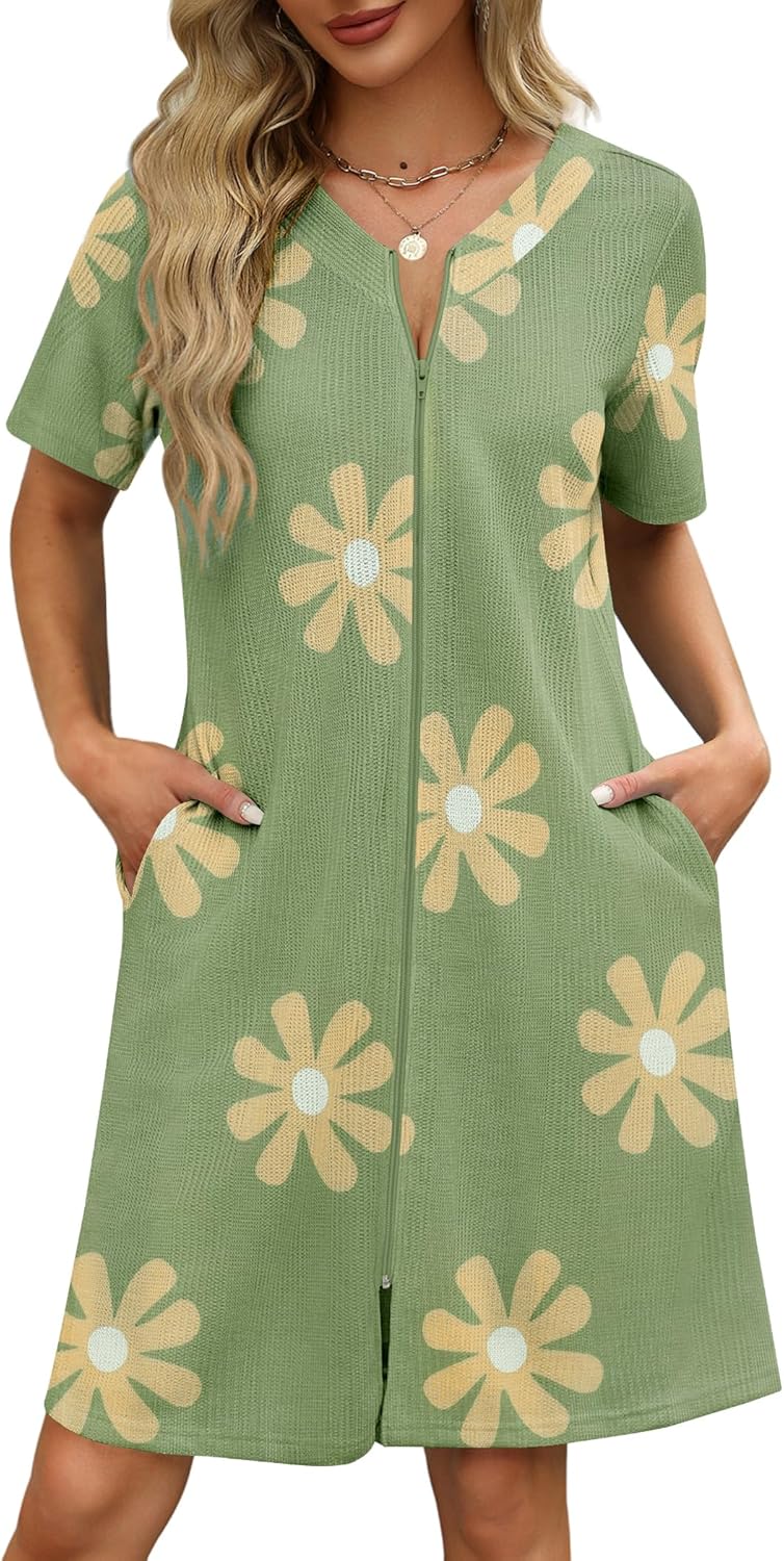 Ekouaer Women Zipper Robes Short Waffle Bathrobe Lightweight House Coat with Pockets Ladies Loungewear S-3XL