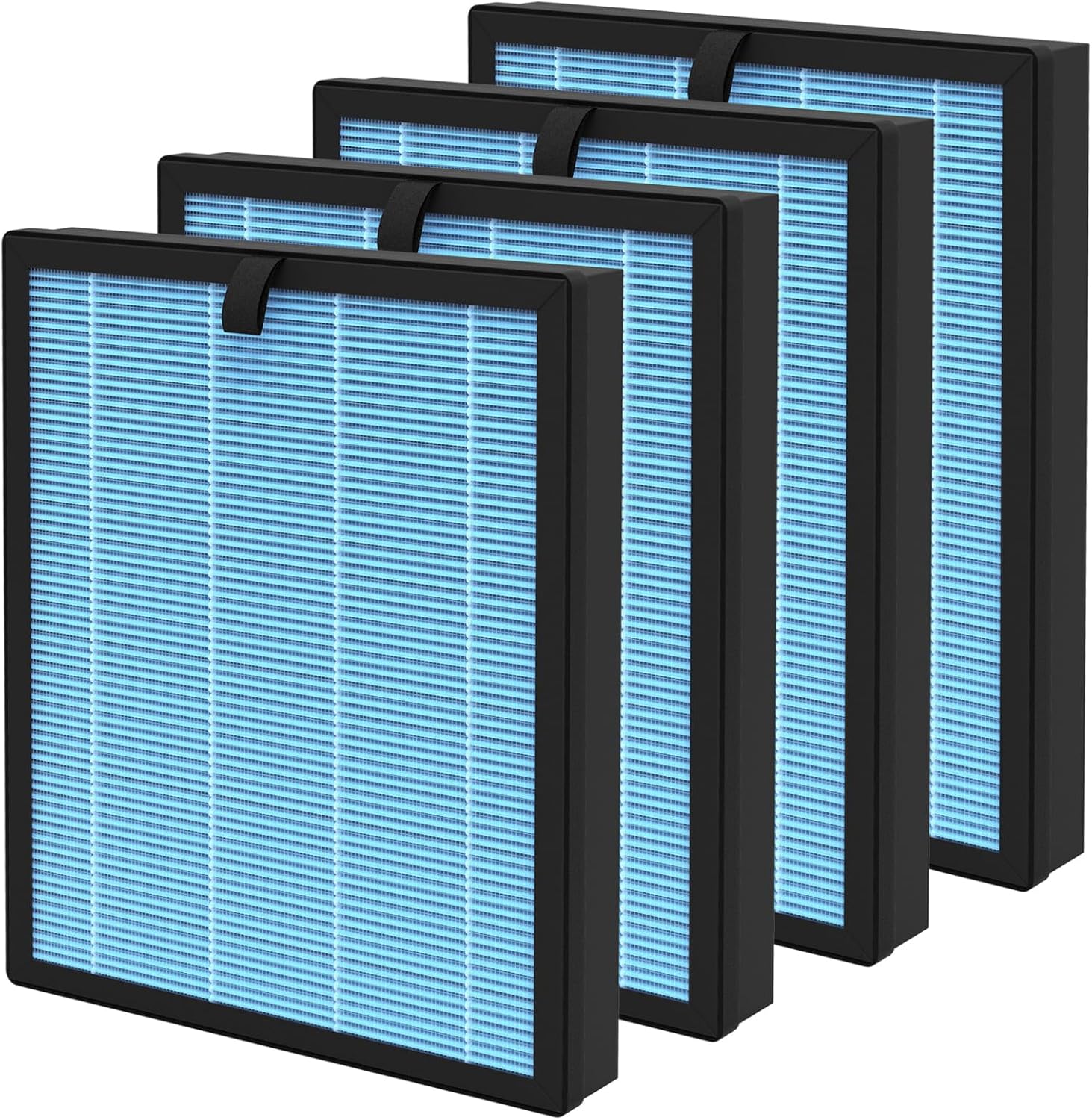- ▶4-IN-1 Filtration: The filter has 4 layers, includes an Pre-Filter, Special Silver Lons Layer, H13 True HEPA Layer and Activated Carbon Layer, it can effectively filter particles and odors from indoor space, such as lint, fiber, pet dander, dust, smoke, pollen and VOCs, helping to improve your indoor air quality.