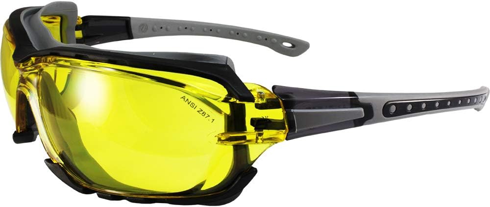 Birdz Eyewear Gasket Safety Padded Motorcycle Sport Sunglasses Grey with Clear Lens