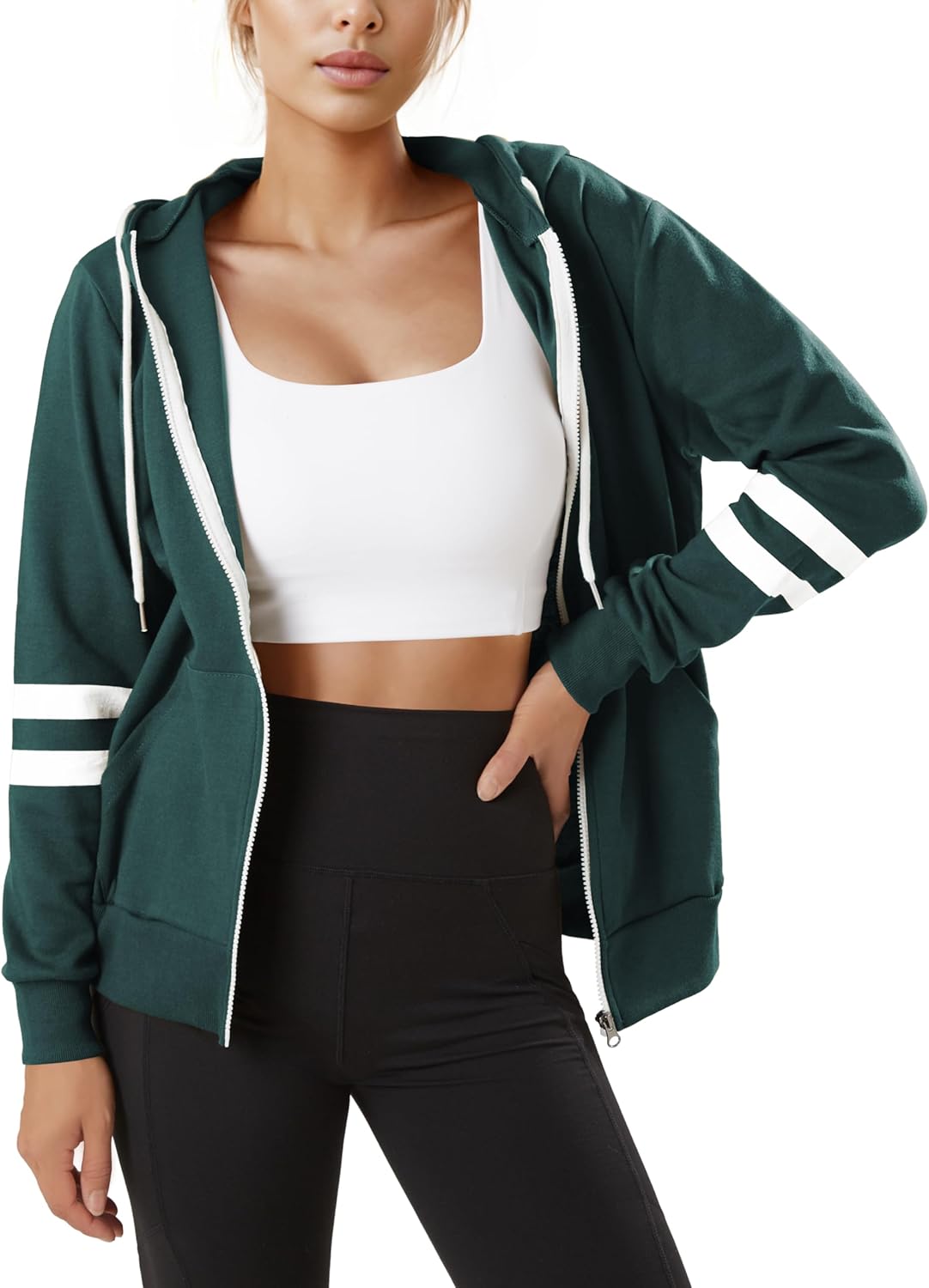 GIVON Womens Comfortable Long Sleeve Striped Hoodie Jacket Lightweight Hooded Sweatshirt with Kanga Pocket