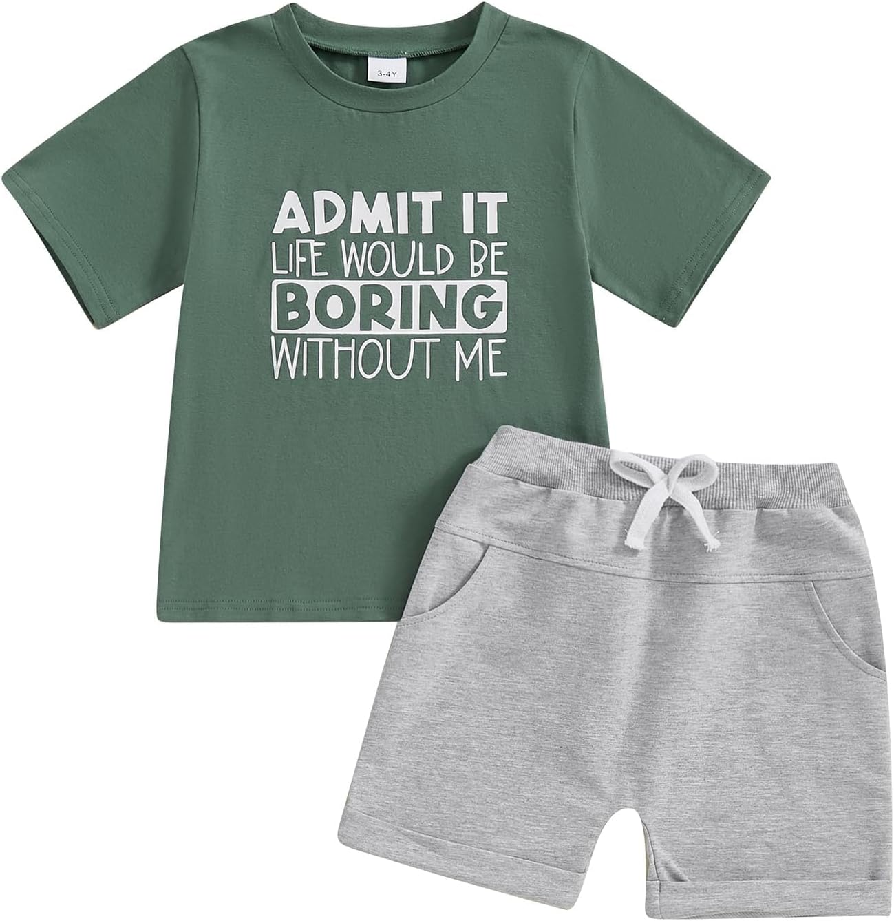 wdehow Toddler Baby Boy Summer Clothes Set Letter Print Crew Neck Short Sleeve T-Shirts Elastic Waist Shorts 2Pcs Outfits