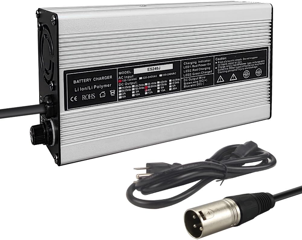 Abakoo 58.8V 4A Battery Charger for 51.8V 50V 52V Li-ion Battery 14S Lithium with 3-Pin XLR Connector