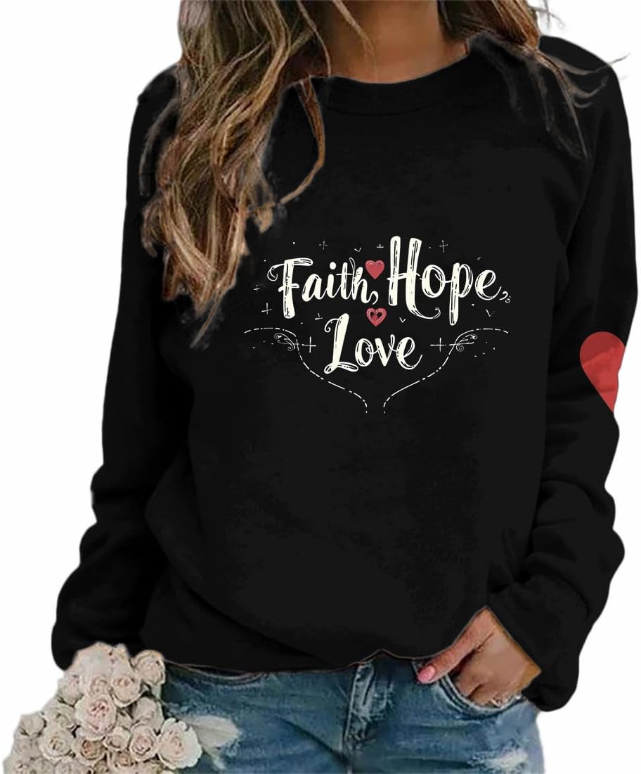 HOTYD Womens Cute Heart Print Valentine Sweatshirt Casual Long Sleeve Graphic Shirts Oversized Crew Neck Pullover Tops
