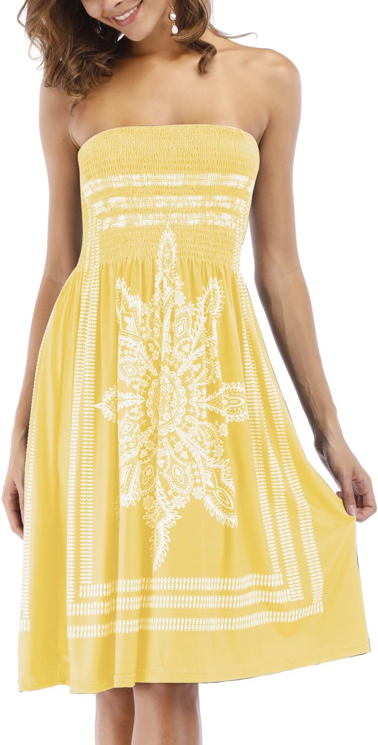 Women's Strapless Floral Bohemian Casual Mini Beach Dress Cover-ups Dress