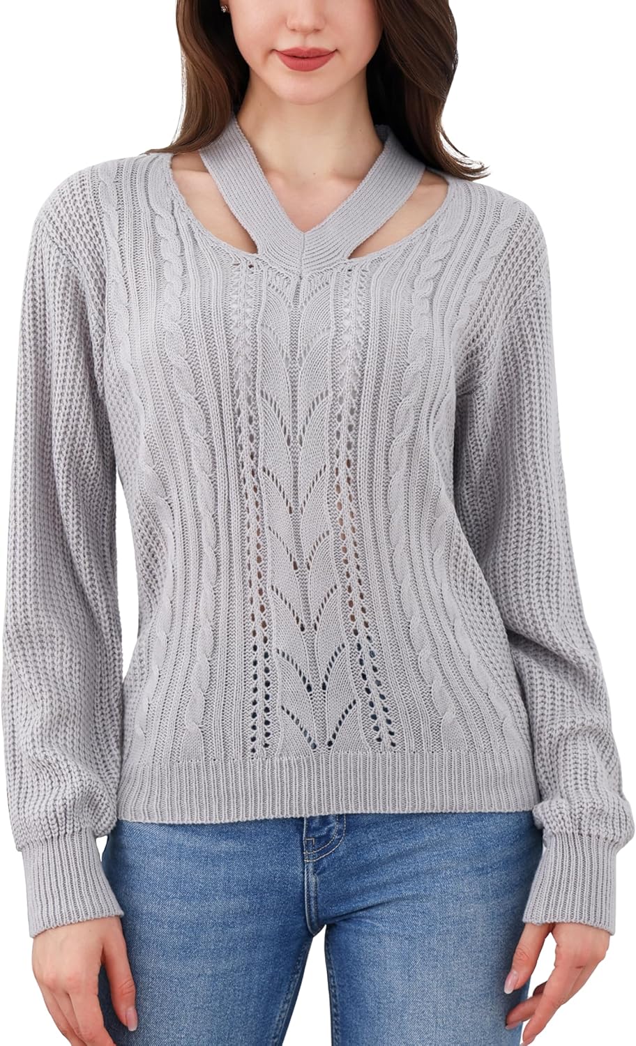 LemonGirl Womens V-Neck Pullover Sweater Long Sleeve Knit Top Casual Fall Comfort