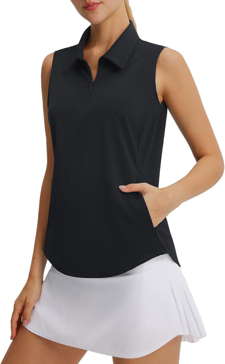 baleaf Women's Golf Shirts Sleeveless Pockets Tennis Tops Workout Athletic Polo V Neck Collared UPF