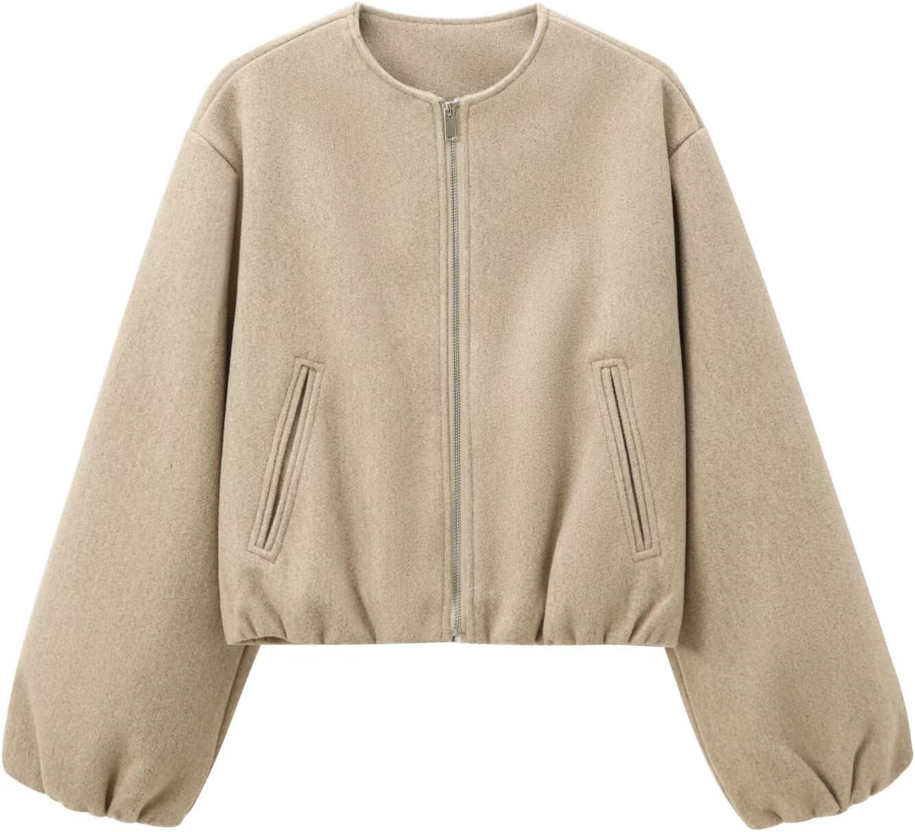 Womens Cropped Bomber Jacket Fall Casual Zip Up Varsity Jackets Trendy Outerwear Coats with Welt Pockets