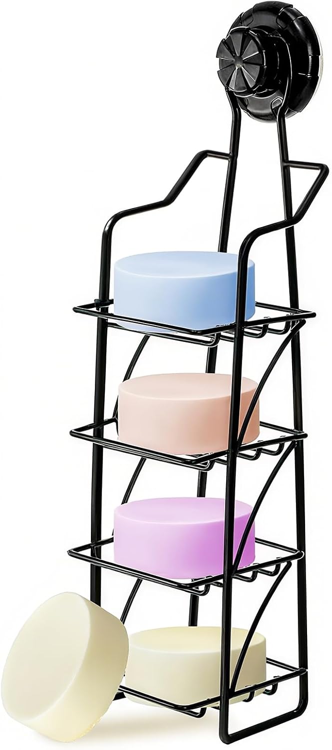 - 4 Tier Soap Holder Design: This suction cup soap dish for shower can be hung on your shower wall or used as a free-standing unit with the legs. Either way, it provides ample storage space for your shower essentials.