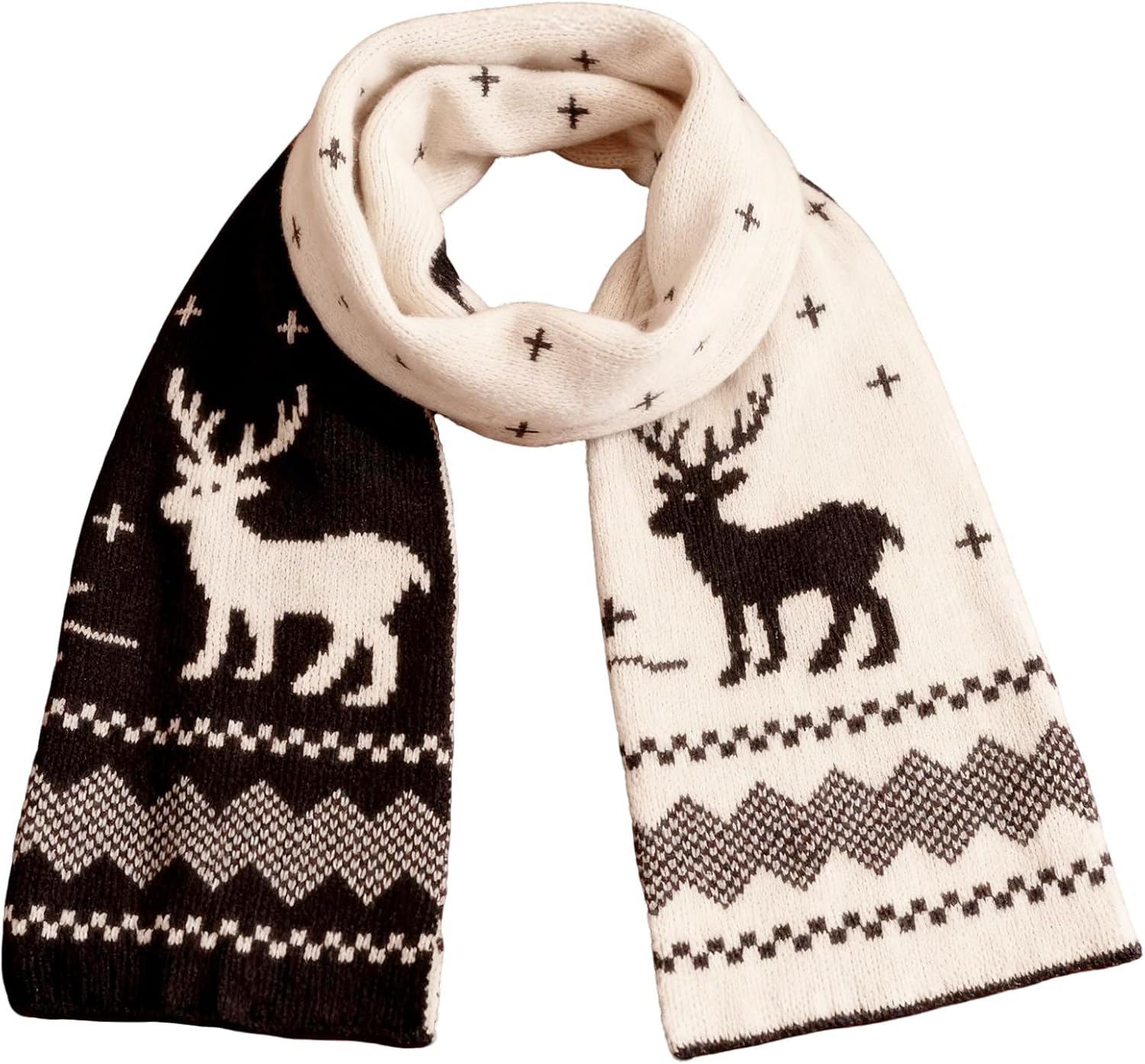 Sept.Filles Christmas Winter Knitted Scarf For Women Reversible Warm Scarf Reindeer Antlers Cozy Warm Long Scarves