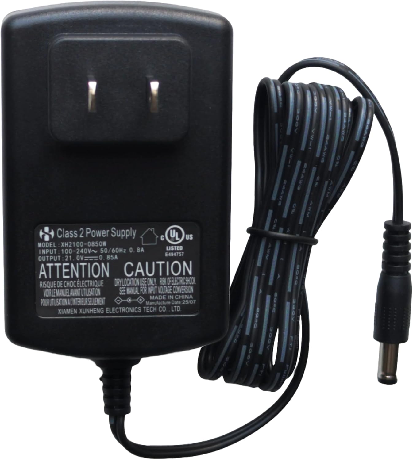 - Input: 100-240V AC, Output: 21V DC 0.85A