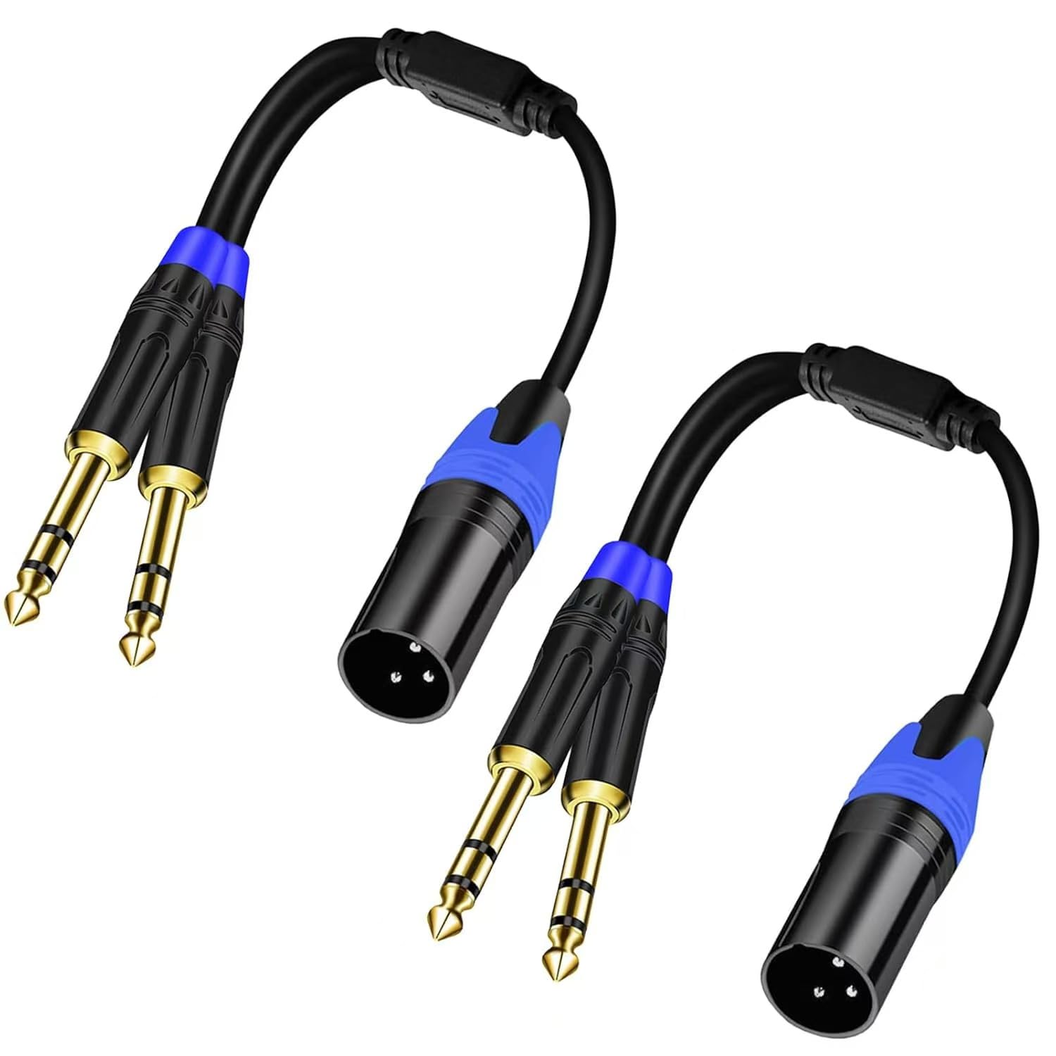 - male XLR to 2 x TRS 6.35mm 1/4'' Male Unbalanced Y Splitter Cable, it's a biditional cable, a mono 1/4 Inch can input or output to connect to the xlr female plug, designed to split the xlr male into two 1/4 ts unbalanced audio cable, suitable for microphone, mixing board, amplifier, sound card, KTV, home audio theater and other devices