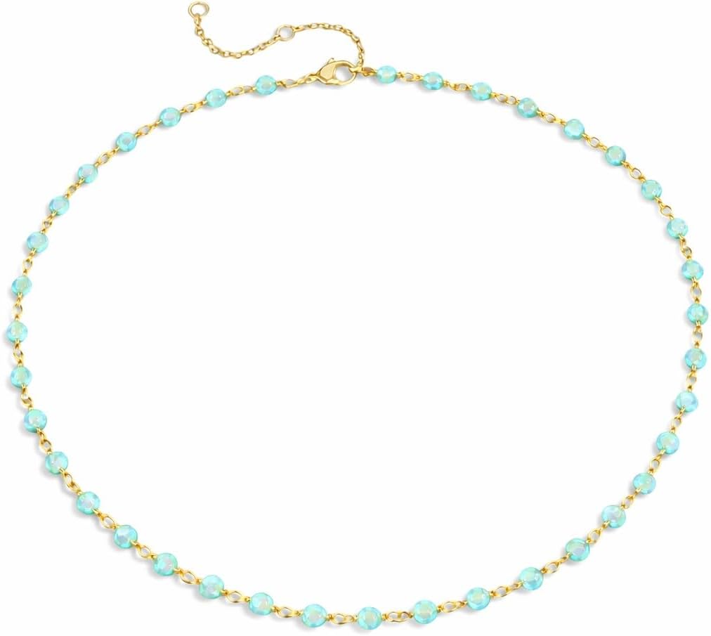 14K Gold Plated 3mm Beaded Chain Necklace for Women – Minimalist Dainty Station Necklace, Thin Adjustable Gold Plated Jewelry for Layering, Everyday Wear, Casual Styling and Gifting