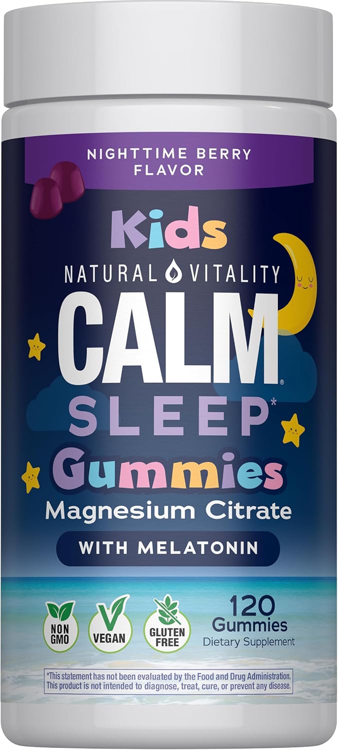 - DIETARY SUPPLEMENT: One bottle of 120 Natural Vitality CALM Kids Sleep Magnesium Supplement Gummies, designed to help kids get a restful night's sleep (1)