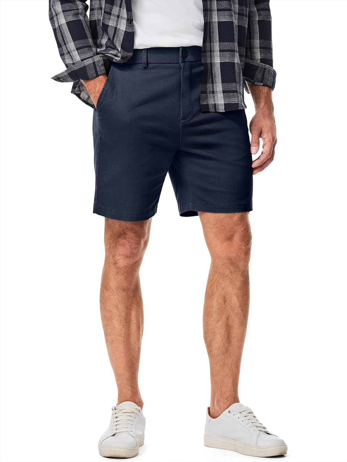 JMIERR Men's Classic-Fit 7" Chino Short Summer Stretch Waist Cotton Twill Casual Dress Shorts with Pockets