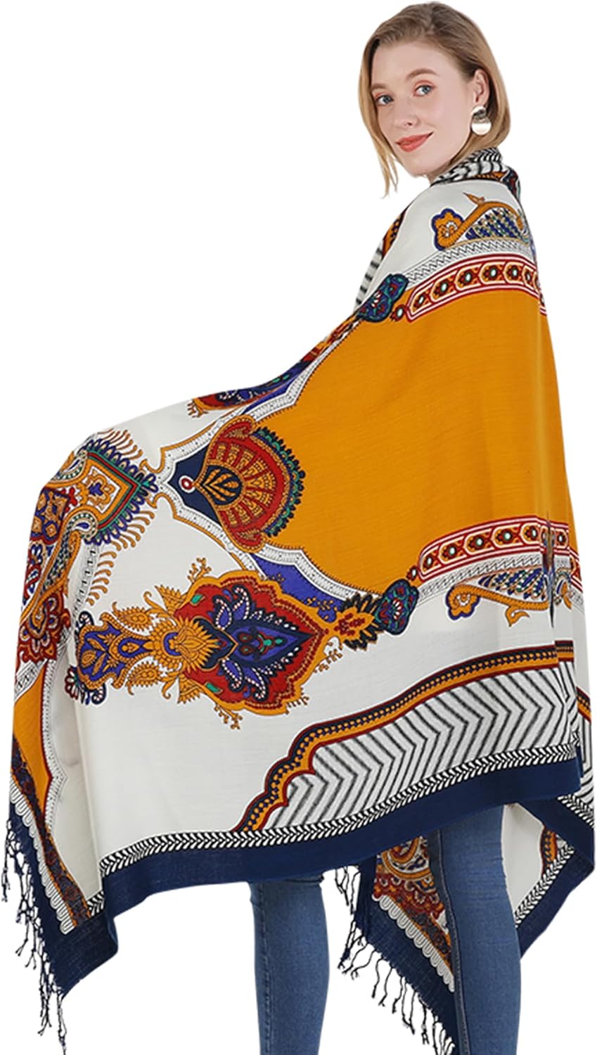 DANA XU 100% Merino Wool Extra Large Pashmina Blanket Travel Scarf Cashmere Wrap for Women Fall Winter Oversize Shawl Floral