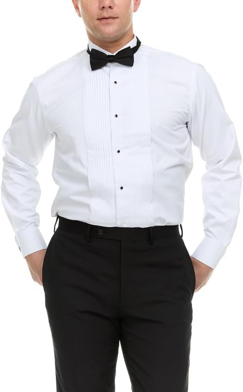 Adam Baker Men's Slim Fit Convertible Cuff Cotton-Blend Laydown & Wingtip Collar Tuxedo Shirt - Cufflinks & Bow Tie Included