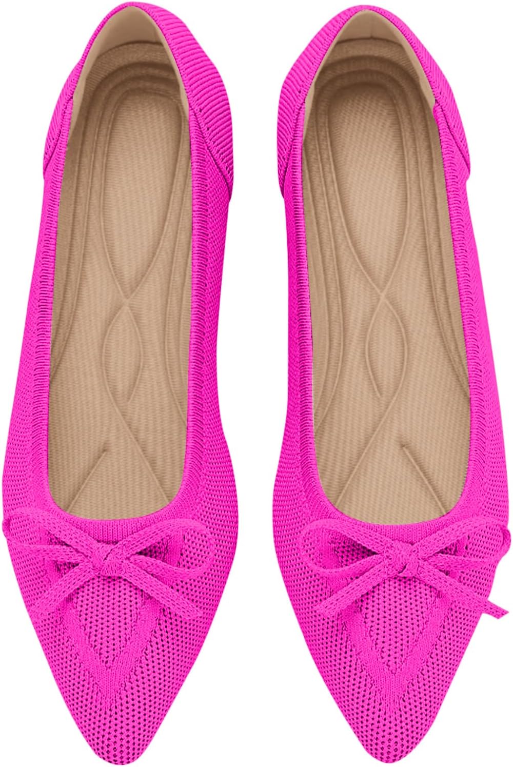 Women's Flats Pointed Toe Bow Knit Ballet Shoes Comfortable Dressy Mesh Slip On Flat