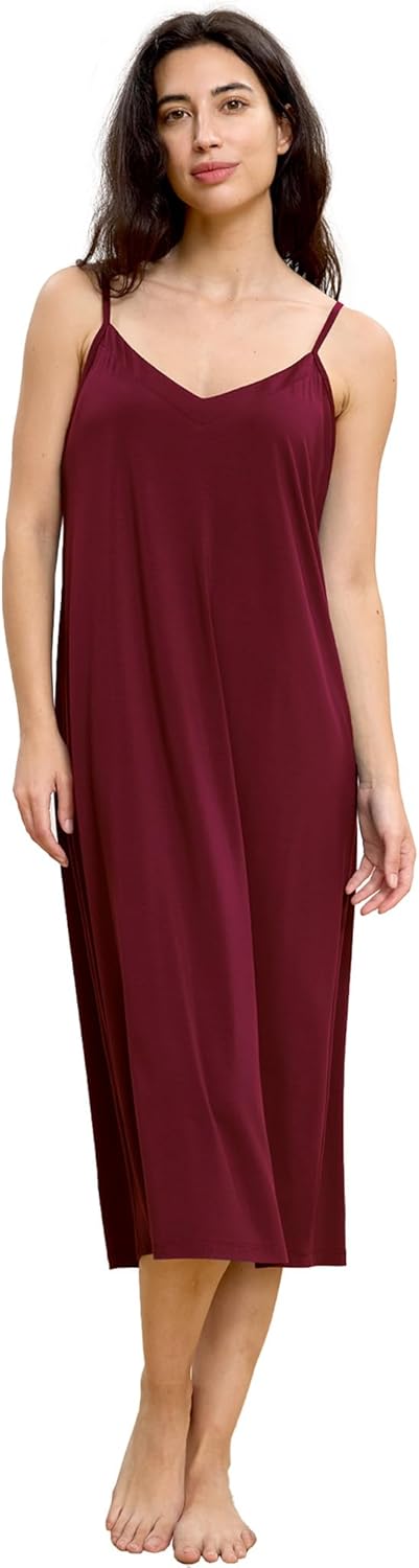 GYS Women's Nightgowns Bamboo Viscose V Neck Adjustable Spaghetti Straps Sleeveless Sleep Dress