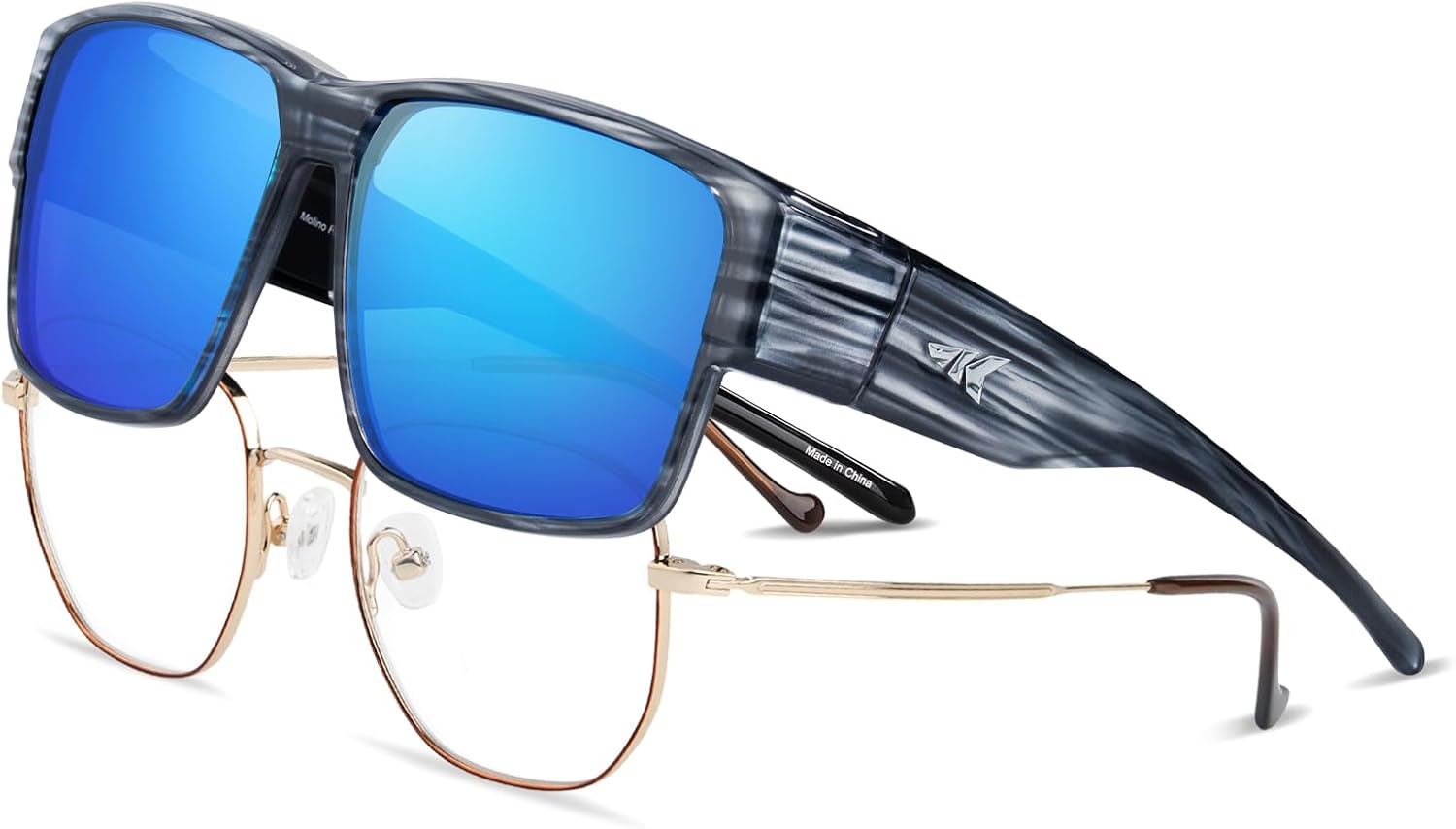 - ULTRA-LIGHT FIT-OVER DESIGN - The KastKing Molino Fit-Over Sunglasses are specially designed to fit over your prescription eyewear, offering a practical solution for those who need both vision correction and sun protection. Whether you're fishing, hiking, or enjoying other outdoor sports, these sunglasses deliver superior performance without the added bulk, thanks to their ultra-light design, which weighs only 0.68oz.