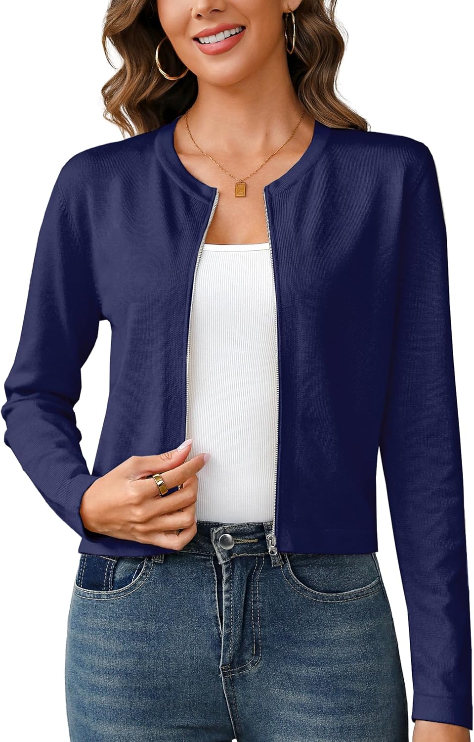Totatuit Womens Long Sleeve Knitted Zip-Up Cardigan Sweaters Lightweight Crew Neck Cropped Shrug Fall Sweatshirts Jacket