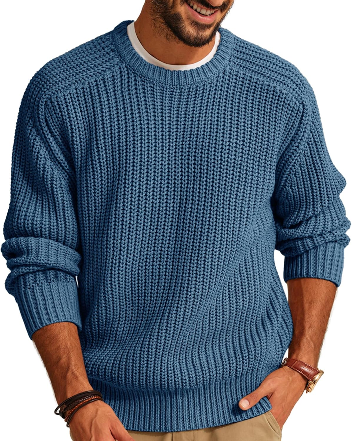 PJ PAUL JONES Mens Sweater Crewneck Knit Sweaters Casual Textured Pullover Sweater